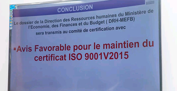 Cet audit clôt le second cycle de certification et s’inscrit dans la stratégie de renforcement de la performance et de la qualité des processus RH au sein de la DRH-MEFB.de la certification ISO 9001 Version 2015.