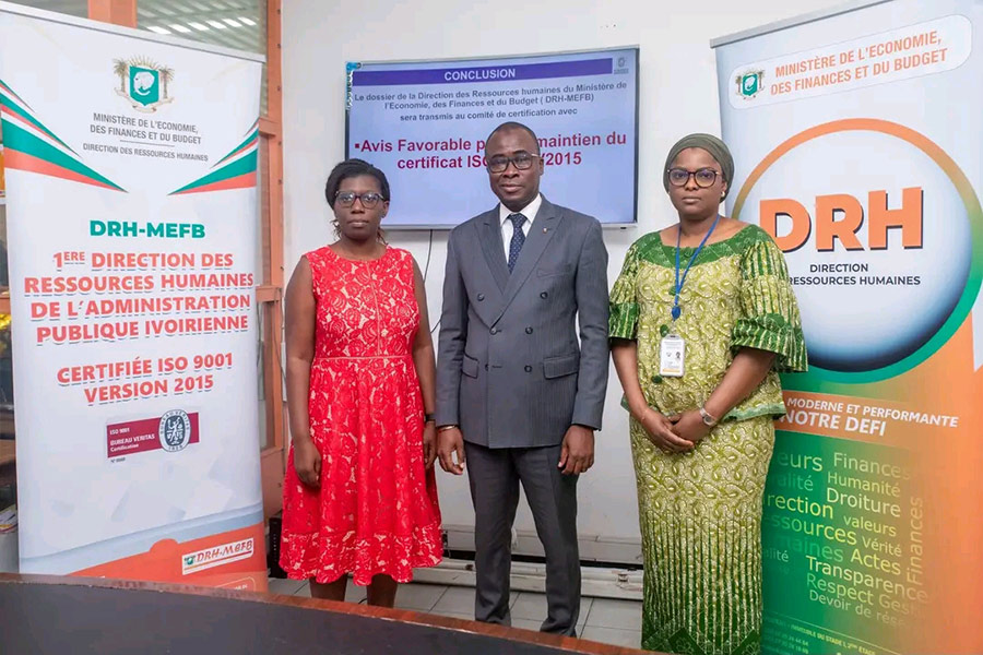 CLÔTURE DE L'AUDIT DE SURVEILLANCE 2 À LA DRH-MEFBCe jeudi 12 mars 2026, la DRH-MEFB a procédé à la restitution des travaux de son audit de suivi 2, lancé la veille dans la salle de conférences de l’immeuble du Stade 1, au Plateau. Mme Éléonore N’GORAN, Responsable d’audit chez BUREAU VERITAS Côte |